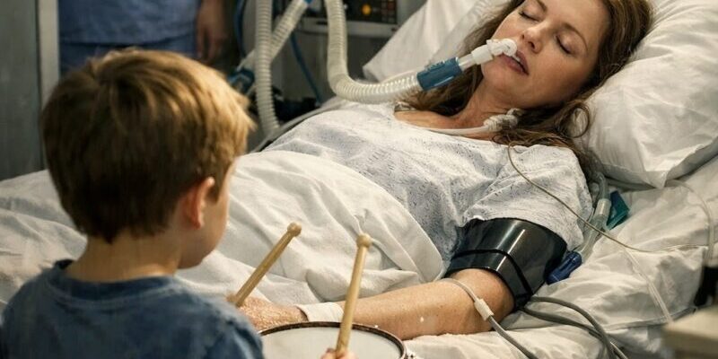 Ein kleiner Junge, von hinten gesehen, trommelte sanft auf einer Trommel und saß neben Eleanors Bett. Laura atmete ein, um zu rufen… dann hielt sie abrupt inne.